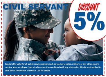 Special offer valid for all public service workers, police, military, or any other government or state employee.